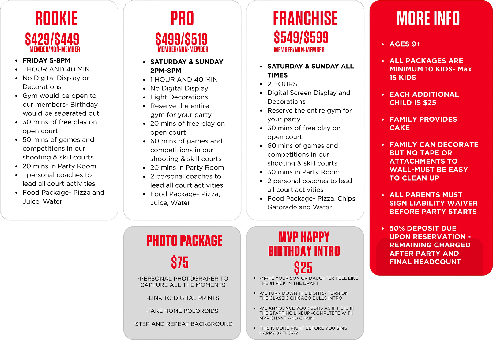 BIRTHDAY PARTY OPTIONS